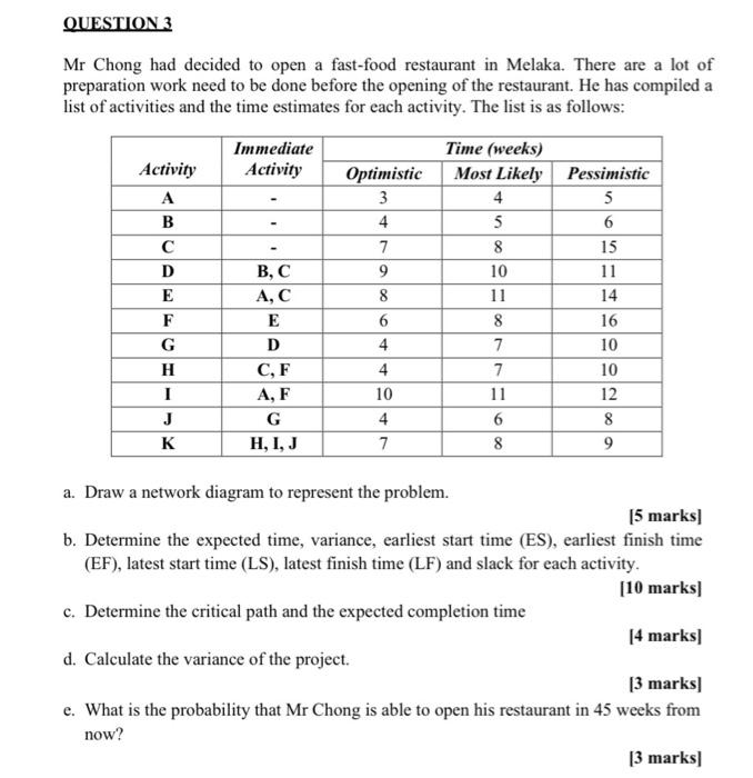 Solved Question 3 Mr Chong Had Decided To Open A Fast Food Chegg Com